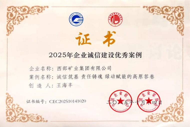 此次入选企业诚信建设优秀实践案例,不仅是对公司长期以来在诚信经营、社会责任、企业管理等多方面突出表现的高度认可,更是对公司诚信建设工作的权威认证。做爱视频 将倍加珍惜这份荣誉,以此为新起点,持续深化企业诚信建设,将诚信理念全面融入战略规划、日常运营及文化内核,致力打造国内矿业领域企业诚信建设典范,为推进社会信用体系高质量发展贡献更多“西矿力量”。